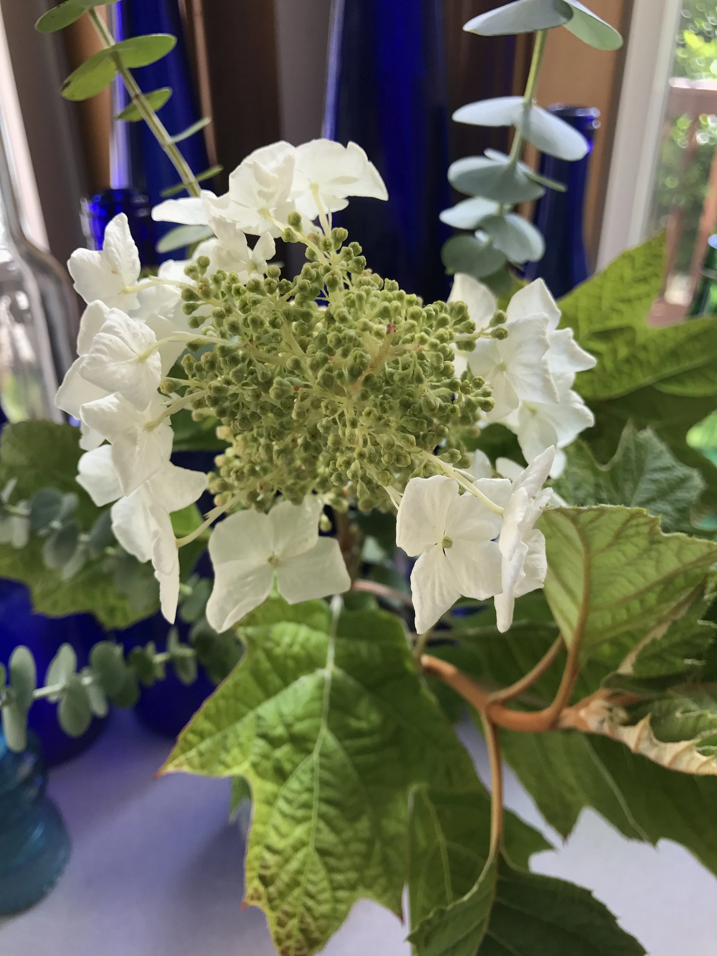 In A Vase Monday: Oakleaf Hydrangea and Eucalyptus