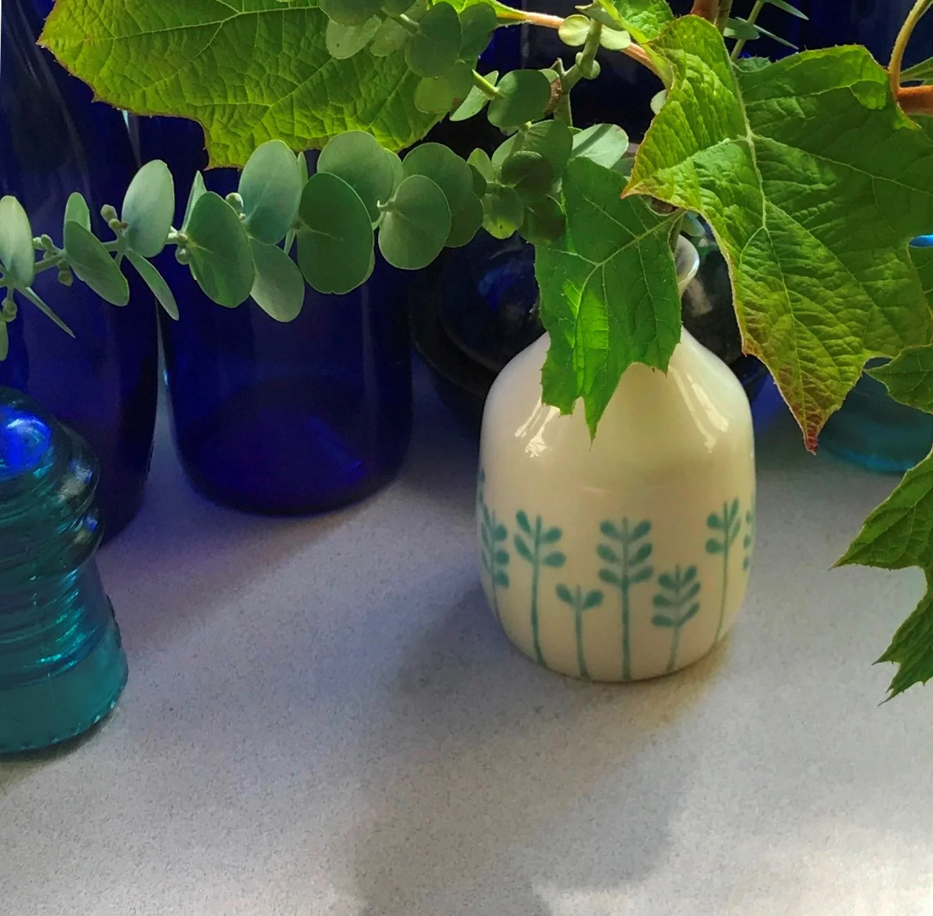 Here's to simple pleasures. May we all just bring in a little green from the outdoors, on a Monday, and show it in a vase on our tables, or kitchen counters.